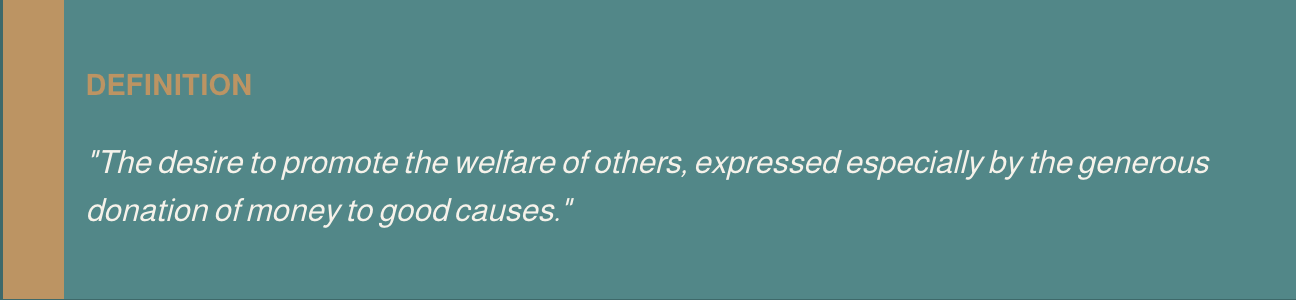 Notice how it says zero mention of a trust fund, a stock portfolio, or a minimum wealth requirement. Mind-blowing, right? Philanthropy at its core is about generosity — and generosity is not a number in your bank account.